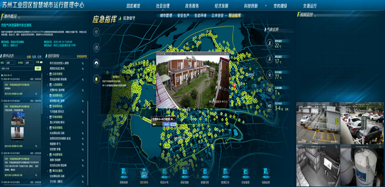 蘇州工業園區建設融合指揮平臺,統籌治理園區環境,利用無人機、執法儀、廣播等,聯動各單位進行會商處理,主要內容包括: