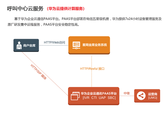 星網信通呼叫中心全媒體云客服系統是一個縱向分層、橫向融合的立體業務平臺。縱向分為媒體接入層、功能支撐層和業務應用層;橫向包括數據交換平臺、統一運維管理平臺、統一安全控制平臺,并可集成CRM/OA/ERP等第三方業務 ----華為云提供計算服務